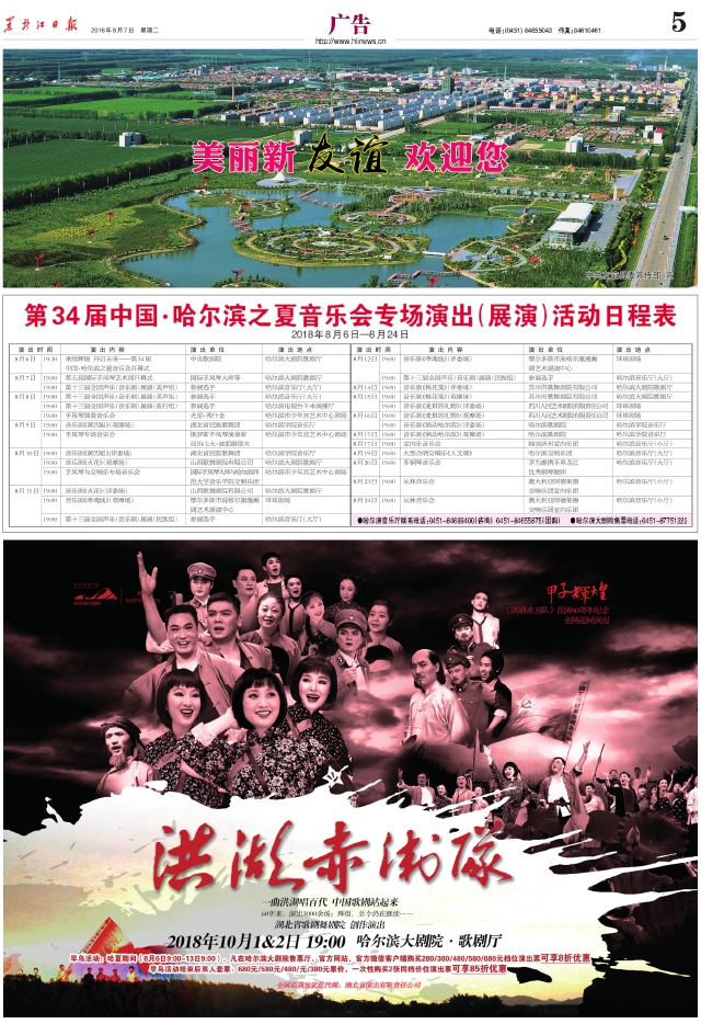 第34届中国·哈尔滨之夏音乐会专场演出(展演)活动日程表