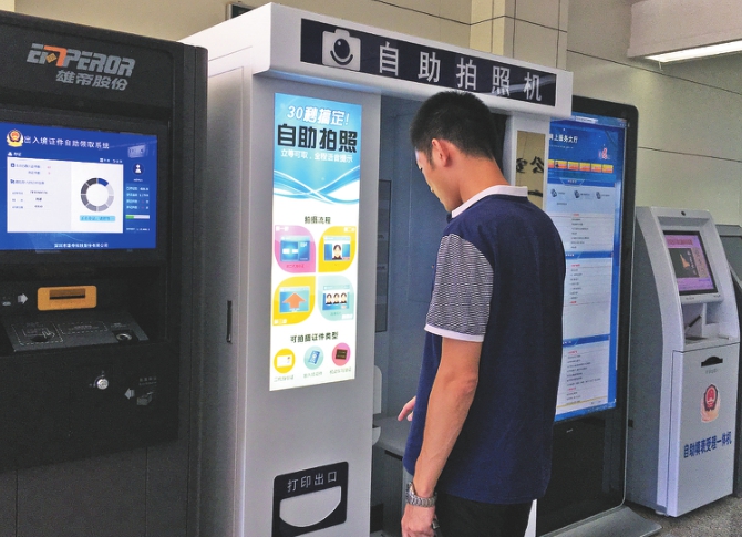 出入境接待大厅新增加的自助拍照机等便民设施。