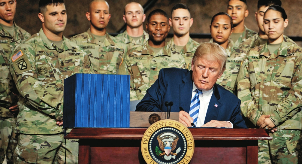 8月13日,美国总统特朗普在纽约州一处军事基地签署2019财年国防授权法案。 新华社发