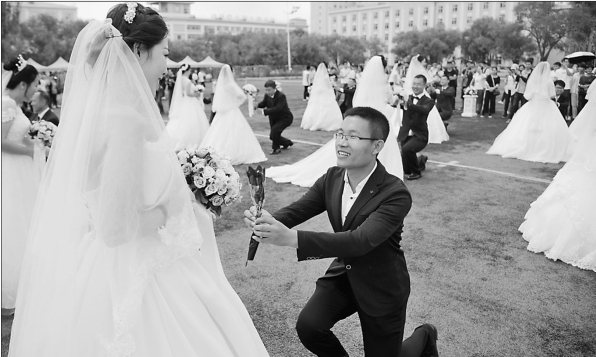 9月1日是哈尔滨工程大学建校六十五周年。为了迎接建校纪念日的到来,学校专门举行了“校友文化节——校友集体婚礼”,邀请32对学校不同时期的校友伉俪重返母校,举行隆重而又气氛热烈的集体婚礼,让校友见证母校发展,让母校见证校友幸福。 金声本报记者苏强摄