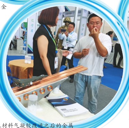 □文/摄见习记者马雨彤 漫步新博会展厅,一个精致的战斗机模型引得众人围观,仔细一看发现奥秘其实是战斗机下面的金属材料,它看似普通,实则暗藏玄机。这是由北京弘大科技研发的纳米材料气凝胶改进之后的金属铜和铝,在展厅灯光的照射下亮到发光。 现场一位身着黑色裙子的技术人员介绍说,纳米材料气凝胶是世界上最轻的固体,其特性创下15项吉尼斯世界纪录,被称为“可以改变世界的材料”。作为未来十大新材料之一的气凝胶具有巨大的应用价值,是在国防军工、节能环保、轨道交通、石油化工等方面都有广泛前景的军民两用材料,将引领众多领域的划时代变革。气凝胶应用的时候会被制成粉末添加在其他材料中,例如有色金属紫铜,与气凝胶结合作出改进之后导电率可达到94%。 展台上的气凝胶样品形态呈块状,小心翼翼地拿起一小块放在手里,几乎感受不到重量,一用力这世界上最轻的固体还会化为粉末飘散在空气当中。现阶段其凝胶的密度在40公斤每立方米,在接下来的测验中还会有更好的成绩。参展商颇为骄傲地说,气凝胶在中国的造价在每立方米3.5万人民币,远低于美国的每立方米2.3万美元。