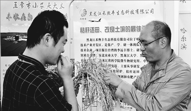 □文/摄本报记者王振良 在第六届绿博会展馆,总能看到科技助力绿色农业的喜人成果。记者在五常大米品牌企业“小农夫”展台上,就看到禾煦丰生态科技在这里共做展示。 工作人员向记者介绍了禾煦丰“微16”微生物制剂和“酵9”含氨基酸水溶肥。“微16”是由多种有效复合菌群经特殊工艺发酵制成,能促进秸秆发酵腐熟,对治理土壤板结、酸化有效,可增肥地力,减少作物的连作障碍,生根壮苗,同时可钝化土壤重金属、降解衣药残留,改善生态环境。 禾煦丰公司负责人温铁军说,2017年公司对两个生物科技产品进行了田间示范及登记实验,在通河、宁安、五常等11个县市共21个试验点,涉及盐碱地、水田、旱田,作物品种包括水稻、玉米、大豆、杂粮、窝瓜及各种蔬菜水果,试验结果显示,经“微16”、“酵9”处理,作物长势明显,增产在27%至77%,提高出米率在2%以上。 五常小农夫水稻种植合作社的工作人员说,他们今年用了一些稻田做生物菌肥喷施、灌施实验,实验田内的稻子明显抗倒伏,抵抗住了8月末那场台风带来的风灾影响,而且这些试验田里的稻穗更加金黄,呈现早熟迹象。 温铁军说,绿博会上,已经有意向团购公司产品的客户三位,有意向代理客户一位,接待了一个有意向合作的单位。 禾煦丰公司的合作伙伴(右)对施用了生物菌肥稻花香品质非常认可。