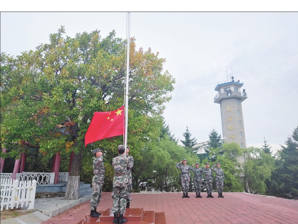 □文/摄杨磊王强 中秋佳节到来之际,驻守在祖国大陆最东端的“东方第一哨”全体官兵度过了神圣而幸福的中秋节。 4时50分,伴随着祖国第一缕阳光,鲜艳的五星红旗冉冉升起,乌苏镇哨所官兵在国旗台前庄严敬礼,这意味着繁忙的一天又要开始了,紧接着巡逻、站岗、整理内务、清扫营区、准备会餐……看着晚饭桌上丰盛的菜肴、热气腾腾的火锅,官兵都感到心里暖融融的。饭后,哨所组织官兵跟家人视频通话,四级军士长王小兵看到远在四川的妻子和两个女儿,眼睛里含着泪水,嘴角挂满笑容,他对两个女儿说:“爸爸没能在中秋节陪在你们身边,那是因为爸爸是军人,需要在边关保家卫国。等到月亮升起时,我给你们发视频、照片,让你们和妈妈欣赏一下边关的明月。” 伴随着祖国的第一缕阳光,举行庄严的升旗仪式。
