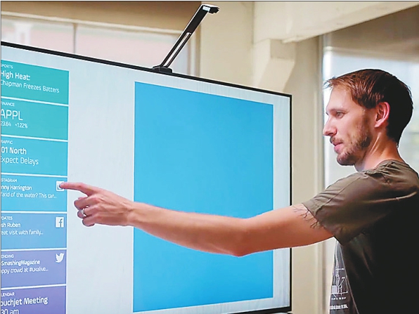 未来的一款新设计却能让你家里的电视秒变触摸屏。它可以内置Andr oid操作系统,可以在应用市场下载海量软件,应用到电视屏幕上。