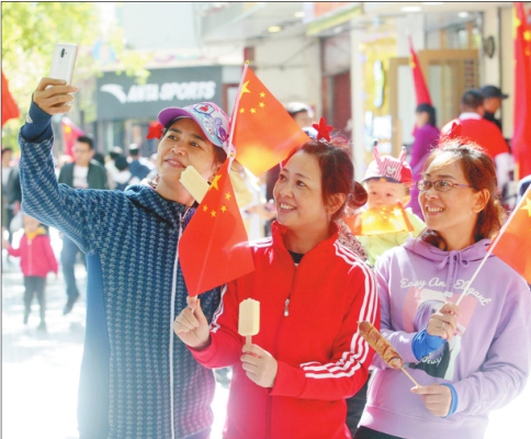 在中央大街,人们拍下快乐的瞬间。 本报记者苏强摄