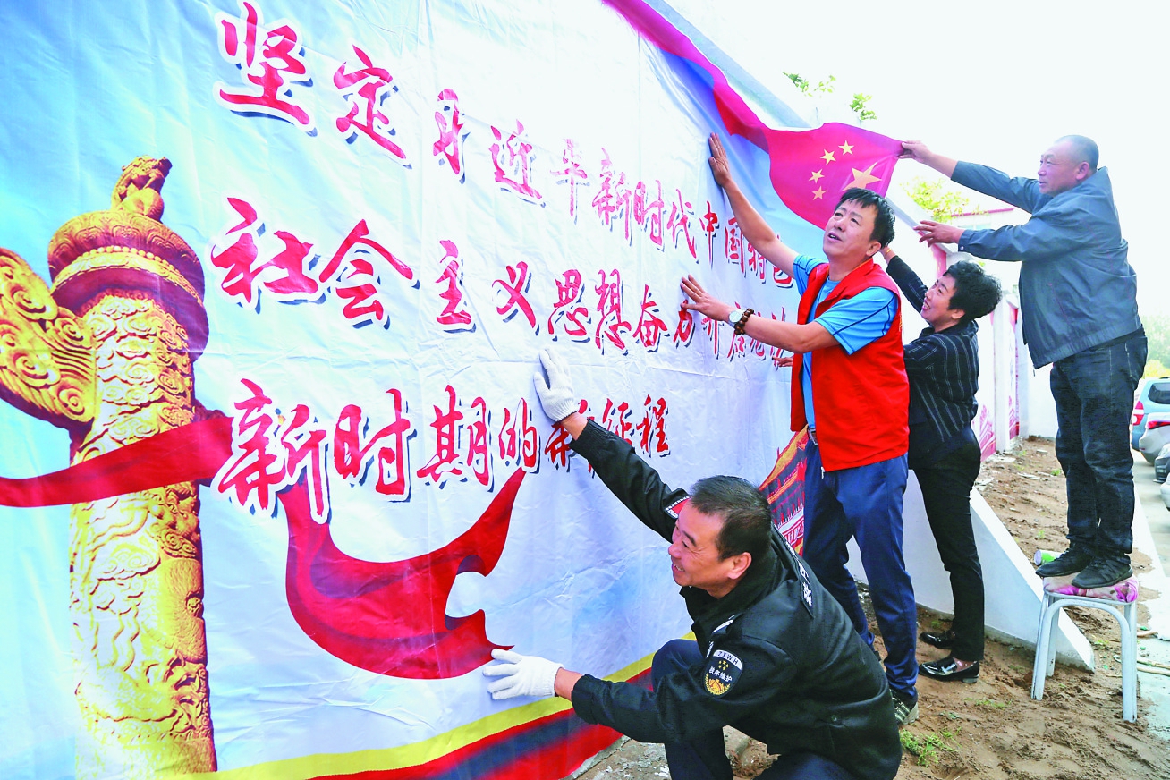 连日来,齐齐哈尔市南航街道虹园社区党委组织人员对小区广场和围墙进行十九大精神、习近平新时代中国特色社会主义思想以及社会主义核心价值观宣传布彩。目前,已布彩30处、设立宣传图板5块。 黄洋本报记者姚建平摄
