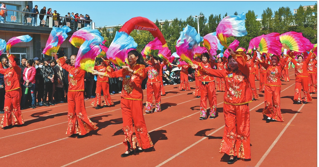 佳木斯市桦南县老年协会拥有3万多名会员,图为老年协会会员参加秧歌展演比赛。 桦南县卫计委提供