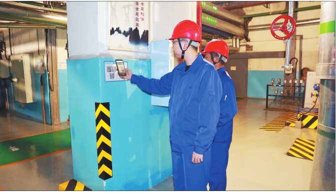 哈三电厂1号机组1号给水泵处,员工手机扫码查隐患。 范珊珊摄