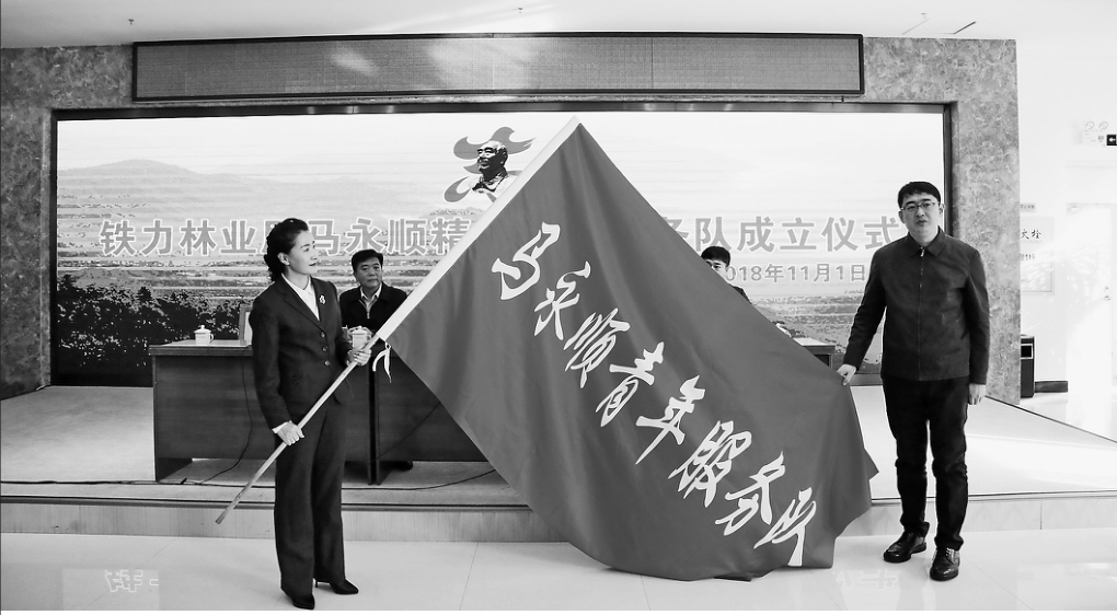 马永顺精神青年服务队成立仪式日前在伊春铁力林业局马永顺纪念馆举行,服务队以“打造绿色铁林、构建温馨家园”为目标,开展系列特色服务。 曲保达摄
