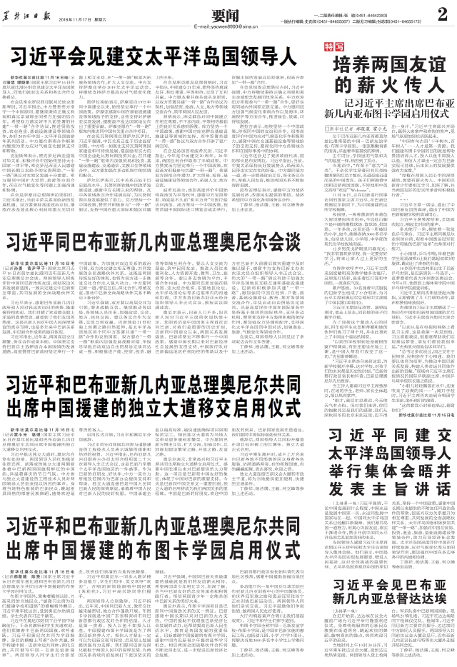 习近平和巴布亚新几内亚总理奥尼尔共同出席中国援建的独立大道移交启用仪式