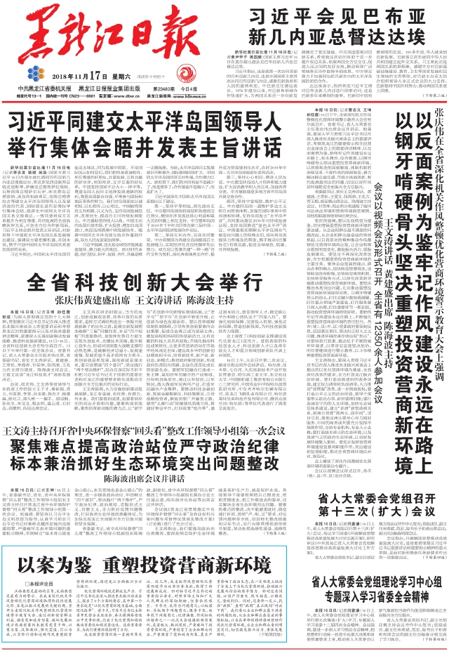 本报16日讯(记者曹忠义王坤孙佳薇)16日下午,全省深化机关作风整顿优化营商环境警示教育大会在哈尔滨召开。省委书记、省人大常委会主任张庆伟出席会议并讲话。他强调,要深入学习贯彻习近平总书记在深入推进东北振兴座谈会上的重要讲话、考察黑龙江的重要指示和在民营企业座谈会上的重要讲话精神,以反面案例为鉴,始终牢记作风建设永远在路上,标本兼治、综合施策,以钢牙啃硬骨头坚决重塑投资营商新环境,以思想观念的深刻解放、体制机制的深刻变革、干部作风的深刻转变,着力解决群众最反感、市场主体最困扰、制约发展最突出的问题,切实以好作风好环境推进全面振兴全方位振兴。 省委副书记、省长王文涛讲话。黄建盛、王常松、王爱文、张雨浦、王兆力、贾玉梅、胡亚枫出席会议。陈海波主持会议。甘荣坤、程志明分别通报了破坏司法执法环境和营商环境典型案例。其他现职副省级领导出席会议。 张庆伟强调,要以反面典型为镜鉴,切实增强重塑投资营商新环境的紧迫感。从企业和群众最不满意的问题改起,从企业和群众最受益的事情抓起,以自我革命的精神推动作风整顿优化营商环境再出发,让企业和群众看到明显变化,激发振兴活力、重振发展雄风。要坚定不移深化改革创新,牢牢把握重塑投资营商新环境的主要任务。聚焦企业发展的痛点、群众办事的难点,加快转变思想观念,加快转变政府职能,加快转变体制机制,加快转变服务方式,以深化改革新突破推动重塑投资营商新环境。要坚决整治各类突出问题,扎实推动重塑投资营商新环境取得实效。以钢牙啃硬骨头的劲头,盯住关键少数较真碰硬,盯住重点领域严查重处,盯住服务窗口深入治理,盯住重要环节一抓到底,推动投资营商环境持续好转。要始终牢记作风建设永远在路上,不断强化重塑投资营商新环境的责任担当。各市(地)、县(市、区)党委政府要深刻反思,层层落实责任,坚决纠正好人主义问题,推进环境改善尽快出现“拐点”,对那些我行我素、置法纪于不顾的破坏环境者,以零容忍态度坚决惩治。明年要继续进行警示教育,以斗争精神重塑投资营商新环境。 王文涛指出,要深入贯彻习近平总书记在深入推进东北振兴座谈会上提出的以优化营商环境为基础、全面深化改革的要求,全力打造龙江振兴好环境。要打造高效透明的政务环境,建立权力清单和负面清单,大力推进“放管服”改革,进一步简政放权;要打造公平正义的法治环境,领导干部要带头依法办事,新官要理旧账;要打造诚信守约的人文环境,加快社会诚信体系建设,建立“亲清”新型政商关系,招商引资要“抓两头、放中间”,项目引进、落地这两头要尽心尽力搞好服务,中间的商务谈判要充分发挥市场的作用,交给专业机构、专业人士去做;要打造绿水青山的生态环境,以及风清气正的政治生态环境,以良好发展环境聚人聚财。要充分发挥省营商环境建设监督局职能作用,突出建设和监督职能,推动全省营商环境法治化、规范化。 会上播放了深化作风整顿优化营商环境明查暗访专题片。 会议以视频会议形式召开,各市(地)、县(市、区)设分会场。