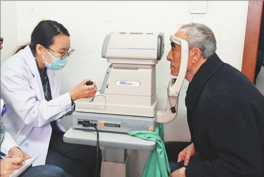 同时,哈医大眼科医院、黑龙江省农垦医院等医务工作者也深入到王岗镇各社区、村屯开展眼科、内科、中医科和骨科等多科义诊。贫困户正在接受免费眼科检查。 吴迎本报记者郭俊峰摄