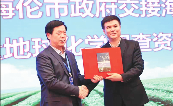 省自然资源厅向海伦市政府交接调查数据。 本报记者程瑶摄