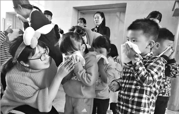 近日,哈尔滨尚志幼儿园群力园区开展了消防安全演习主题活动。演习现场,随着消防预警信号的响起,园区的孩子们在老师引导下用湿毛巾捂住口鼻,按消防逃生路线跑到操场安全地带。据了解,通过演习,提升了孩子们的消防安全意识,增强了紧急逃生能力。 本报记者陈贺摄