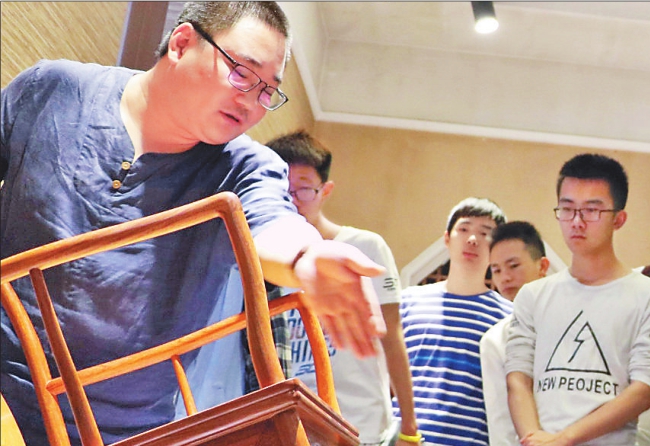 牛晓霆(左一)正在为学生讲授明式家具制造技艺。 图片由采访对象提供