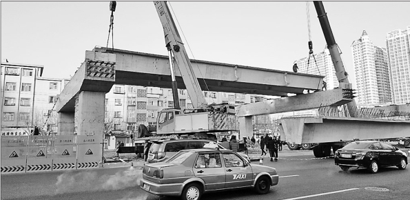 近日,东二环高架体系完善工程启动钢筋混凝土箱梁架设。该项目经过一年多施工建设,目前已完成施工围挡1万多米,钻孔桩2万多米,墩柱60多个。本次箱梁架设是桥梁上部结构施工的开始,为明年东二环高架桥全面施工奠定坚实基础。 本报记者邢汉夫摄