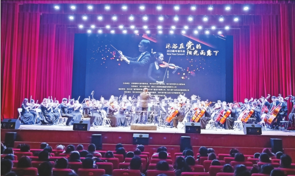 27日晚,由共青团哈尔滨市委员会、哈尔滨市青年联合会、哈尔滨市青年企业家协会主办的“沐浴在党的阳光雨露下——2019新年音乐会”在哈尔滨青年宫启幕,这是哈尔滨青年交响乐团的首场演出。