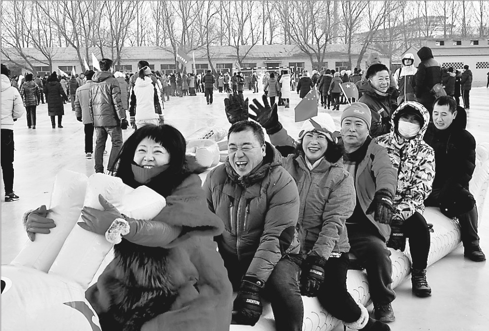 肇东市市民用冰上龙舟、冰上雪圈、冰上爬犁、冰上拔河等方式迎接新年的第一天。 车彦旭霍永祥本报记者邱成摄