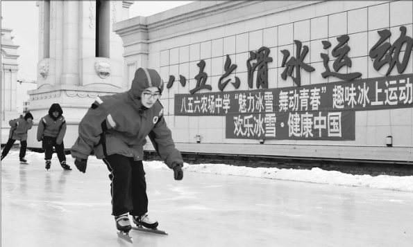 近日,八五六农场中学开展“魅力冰雪舞动青春”趣味冰上运动会。比赛中,同学们拼搏超越,收获健康,分享快乐,体验冰雪带来的独特乐趣。 刘思琪本报记者吴树江摄