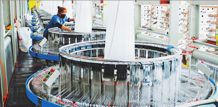 黑龙江双丰塑料制品有限公司工人正在操作具有西欧先进技术、国内最先进的塑料平膜拉丝机组,年生产各种规格塑料编织袋1300多万条。 霍永祥本报记者邱成摄