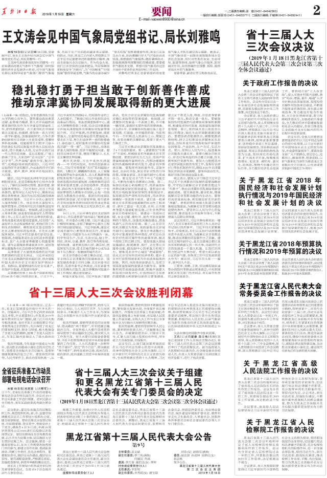 省十三届人大三次会议关于组建和更名黑龙江省第十三届人民代表大会有关专门委员会的决定