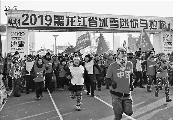 近日,哈尔滨市道里区群力音乐长廊举办赏冰乐雪系列活动之冰雪迷你马拉松。本次比赛以参与和体验为主,来自我省各地的1000名长跑爱好者参与其中。大家一边体验冰雪运动的激情,一边欣赏北国冬日迷人的风光。 本报记者苏强摄