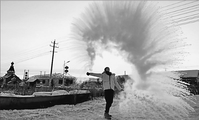 □闫捍江王景阳本报记者刘大泳 在零下30多摄氏度的低温天气中,用装好热水的杯子在空中用力泼去,瞬间成冰。好像定格在空中冰花一样,看起来像无数冰箭射向四面八方,还伴有水气凝结的声音,漂亮极了。 香港游客张杰良第一次来到漠河,他兴奋地说:“我们南方人,见惯大海的风景,来到这里才看到真正冰雪的世界。在极寒天气里玩‘泼水成冰’,太爽了、太刺激了。” “泼水成冰”成为南方游客体验的必备节目。记者了解到,为方便游客体验“泼水成冰”,不少村民的家庭旅馆都专门准备了暖水瓶和水杯,让游客尽情玩耍。 春节临近,我省冰雪旅游热点城市漠河迎来春节旅游小高峰,络绎不绝的南方游客一路向北,走进冰雪童话般的北极村,感受中国最北端的冰雪世界,品尝各类野山珍和冷水鱼,体验这里的“泼水成冰”游戏。导游林女士告诉记者,除了“泼水成冰”,这里还有很多和北相关的景点,如最北一家、最北邮局、最北民俗馆、最北银行、最北点等等。也有很多有趣好玩的体验,如乘坐马拉爬犁,滑雪、滑冰、堆雪人、行走封冻黑龙江、体验冬捕、睡特色火炕、吃特色大锅、游玩冰雪乐园等等。 入冬以来,漠河气温始终在零下30多摄氏度左右,极寒天气下,各个景点内的冰雕雪塑魅力独特。北极梦幻冰雪乐园、北极人家雪人谷、冰雪旅馆等丰富的冰雪旅游产品,令游客大呼过瘾。记者了解到,每年冬季,漠河市委市政府都会围绕冰雪旅游资源,打造独具特色的冰雪景观,举办冰雪赛事活动,冰雪马拉松赛、千人“泼水成冰”趣味比赛、极寒钢管舞挑战赛等,满足了游客赏冰玩雪的需求,让游客尽情体验冰雪的魅力。 游客正在体验“泼水成冰”。 韩军摄