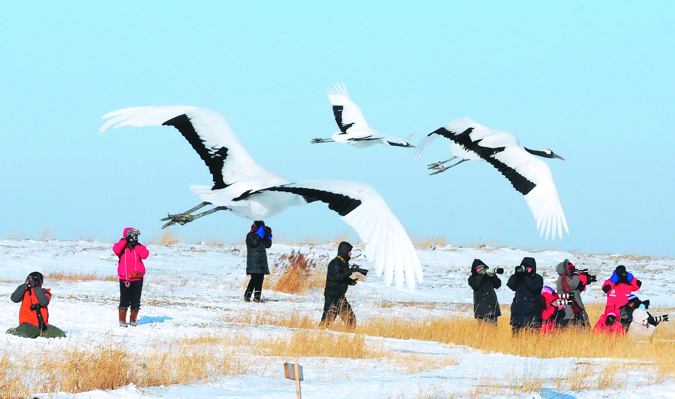 扎龙雪地观鹤。