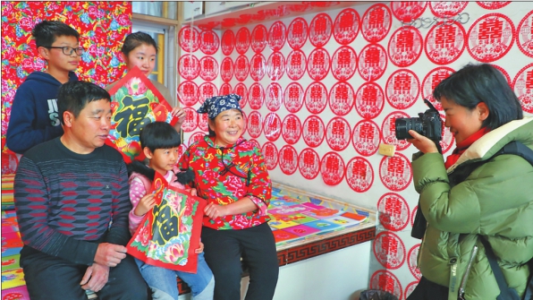 □文/本报记者董新英 摄/本报记者刘心杨 这个春节,我省众多驻村干部选择在贫困村和贫困群众一起过大年。 2月4日农历腊月三十,兰西县兰西镇林盛村第一书记、驻村扶贫工作队队长赵谦和去年一样,在村里度过又一个除夕之夜。他最挂念村里的两家贫困户,这两家人都是老两口,体弱多病。当天,他来到林盛村杨仁屯谭雨生家,写下“锦绣林盛”一副春联,并帮助老人贴好。从老谭家出来,赵谦又来到了林盛村刘君屯赵连江家,和这老两口一起包年三十儿饺子。炕头上赵连江说,赵队长就和自己家人一样,能和他们一起过年,家里就不冷清了。 2月5日大年初一,饶河县西林子乡小南河村第一书记、驻村扶贫工作队队长冷菊贞,在朋友圈写下了“希望小南河发展越来越好”,这个祝福是冷菊贞的新年心愿。这是她在小南河村过的第四个春节,继续保持着帮村民拍全家福的习惯。大年初一这一天,她穿上一身喜庆的红装和小南河村村民一起合影,冷菊贞希望小南河村新年迎来开门红。 春节前夕,青冈县昌盛镇兴东村第一书记、驻村扶贫工作队队长唐小虎,聚齐了村里7名品学兼优但家庭困难的学生,将助学金及笔记本、钢笔、U盘等学习用品以教育扶贫礼包的形式发到孩子们手中,他勉励受助学生发奋学习、努力成才。 冷菊贞(右)为村民拍“全家福”。