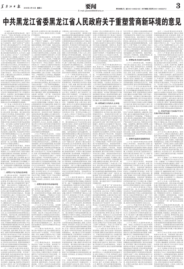 中共黑龙江省委黑龙江省人民政府关于重塑营商新环境的意见