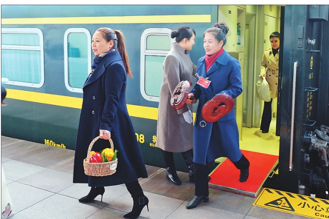 来自海伦市向秋蔬菜农民种植合作社的人大代表高向秋带着合作社生产的蔬菜抵达北京。 本报记者郭俊峰摄