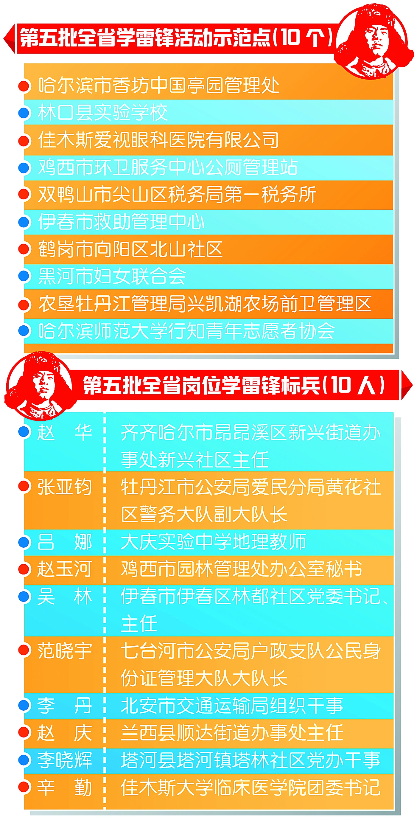 中共黑龙江省委宣传部关于命名第五批全省学雷锋活动示范点和岗位学雷锋标兵的决定