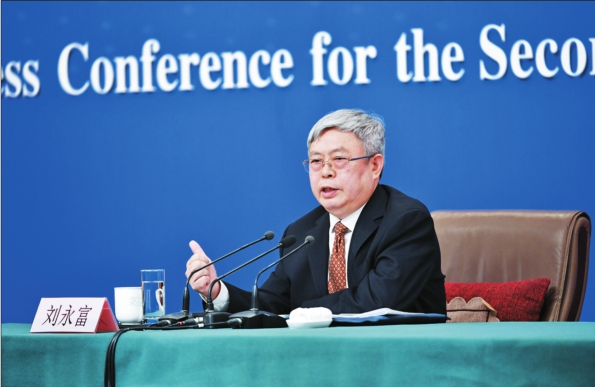 3月7日,十三届全国人大二次会议新闻中心举行记者会,邀请国务院扶贫办主任刘永富就“攻坚克难——坚决打赢脱贫攻坚战”相关问题回答中外记者提问。 新华社记者李然摄