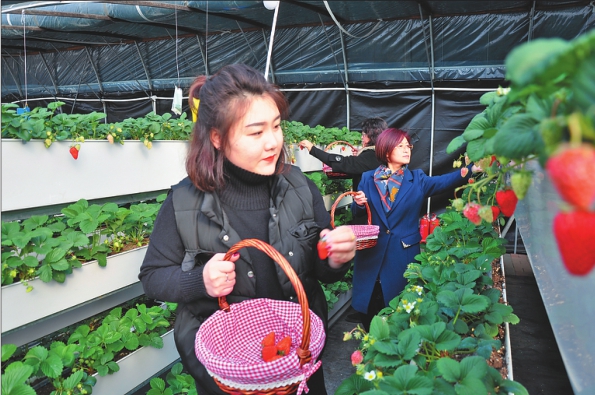 进入3月,北大荒股份宝泉岭分公司生态园内的草莓大批量成熟,吸引大量游客前来采摘,日接待游客近百人。周薇郝明英本报记者吴树江摄