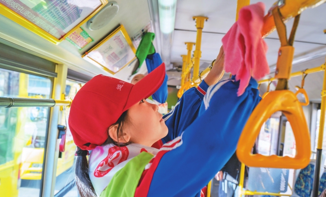 擦洗公交车、走进消防队、慰问环卫工、爱心去捐赠……学雷锋月期间,哈尔滨市经纬小学一年三班的学生们通过开展形式多样的学雷锋活动,在帮助他人传递爱心的同时,让雷锋精神在幼小的心灵中生根发芽。 本报记者马智博摄