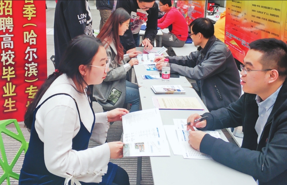 19日,由中共哈尔滨市委组织部,市人社局主办、市人才服务局承办的第二场“2019春季哈尔滨高校校园巡回招聘活动”在哈尔滨工程大学成功举行。本场邀请了哈尔滨汽轮机厂、哈尔滨建成集团等50户地方龙头企业到场招聘,提供就业岗位268个,需求人数达1268人,136人签订了意向性协议。 霍云霞本报记者李健摄