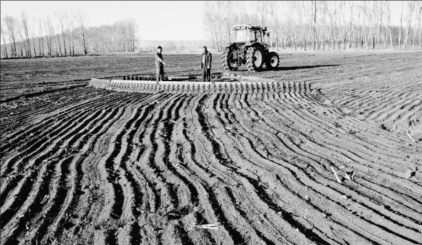 黑龙江垦区针对去冬今春降雪量偏少,春季极易发生旱情对播种不利的实际,组织大马力机车进行耢地封墒作业,将受风面积大的不规则地号进行平整,实现了土地平整后水分蒸发面积小、保湿抗旱的目的。目前八五二分公司已进行耢地作业4万余亩。 夏红英郭明军本报记者刘楠摄
