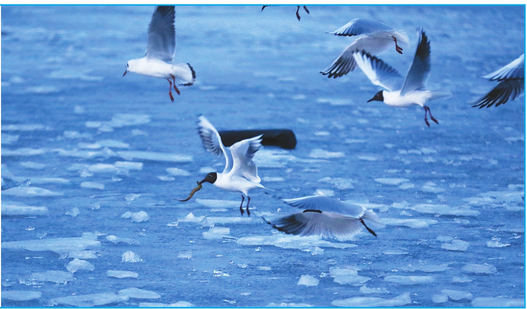 日前,随着候鸟迁徙高峰的到来,近千只红嘴鸥聚集在松花江哈尔滨市道里区江段觅食。 由于今春气温较往年高,松花江开化较早,红嘴鸥抵达冰城的时间也较往年早约一周左右。 本报记者荆天旭摄