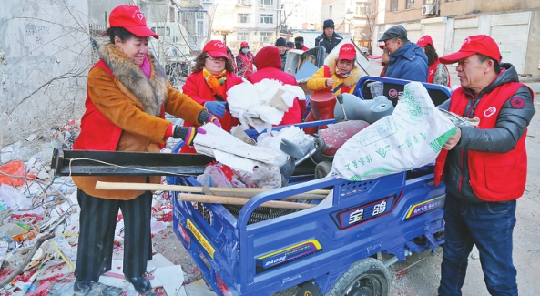 龙沙区五龙街道通达社区党委联合辖区物业共同开展“春风行动扮美家园”环境综合整治活动,为居民营造整洁干净的居住环境。黄洋本报记者姚建平摄