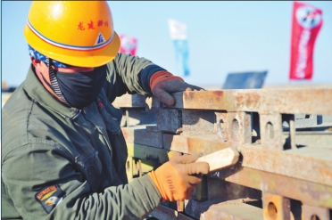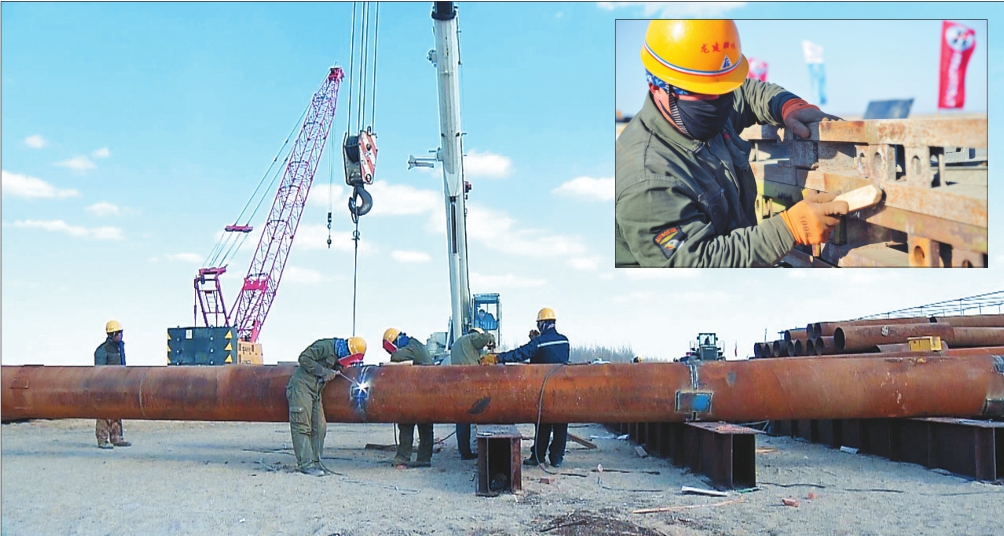 鹤大高速公路佳木斯过境段松花江特大桥施工现场。 姜久明本报记者狄婕摄