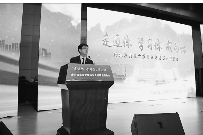 石贤平在哈商大师生先进事迹报告会上发言。 图片由受访者提供