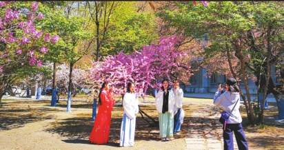“五一”期间,哈尔滨市街头、广场、公园、江畔等处的丁香、桃花、杏花等迎风绽放,市民、游客在花海中赏花度假。本报记者荆天旭摄