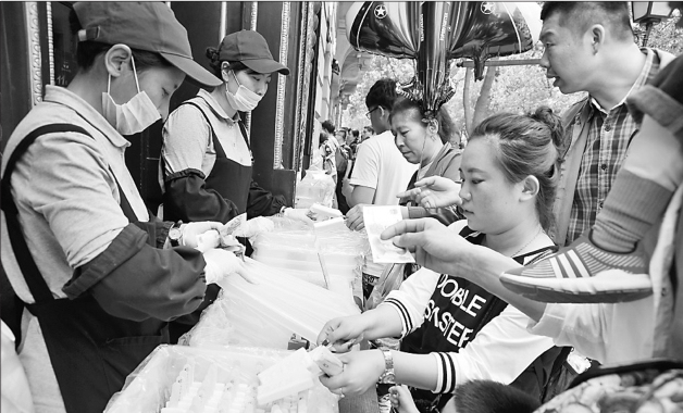 游客在争相购买马迭尔冰棍。 本报记者苏强摄