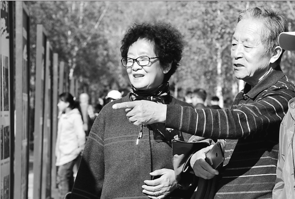 近日,哈尔滨市群力丁香公园举办老道里历史图片展,市民在欣赏丁香花海的同时通过浏览历史图片来回顾老哈尔滨的风貌,增加对城市历史文化的了解。 本报记者郭俊峰摄