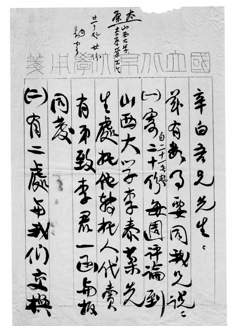 □臧伟强 这两件五四运动精神领袖遗墨,所谈所涉,皆为《每周评论》。 黑龙江大学博物馆名人馆藏李大钊、陈独秀毛笔书札各一通,写于1919年五、六月期间,距今整百年。这两件五四运动精神领袖及中共主要创始人遗墨,所谈所涉,皆为《每周评论》。 《每周评论》,1918年12月由陈独秀、李大钊在北京创办,前25期由陈独秀主编,自第26期起改由胡适任主编。 《每周评论》虽为重点谈论时局政治兼及文艺思想的小报,但作为“五四”时期新文学运动的旗帜并革命进步刊物,它在业界却具有广泛影响力。作为月刊的《新青年》,在思想文艺宣传与启蒙教育方面,深入人心,而作为周刊的《每周评论》,在宣传马克思主义等方面则以其周期短、版面活、紧跟局势等特点而见长。陈独秀在《发刊词》中指出:“《每周评论》的宗旨,就是‘主张公理,反对强权’八个大字”。 李大钊、陈独秀这两通书札,均为致时任北京大学庶务主任李辛白(1875-1951)。彼时,李辛白正兼任《新青年》及《每周评论》出版部主任。 李大钊与李辛白关系颇为密切。李辛白1918年8月在北大创办《新生活》周刊,蔡元培、陈独秀、李大钊、胡适等人都积极为该刊撰稿,仅李大钊一人就在《新生活》发表文章六十余篇。“五四”期间,蔡元培拟辞去北大校长一职,李辛白便随同校图书馆主任李大钊、总务长蒋梦麟宣布辞职。 查1999年人民出版社出版的《李大钊文集》,收录李大钊致李辛白信札六通,均关于《每周评论》。此李大钊致李辛白书札,计三页(另附一封),使用国立北京大学用笺,所谈所述为三件事,一是请他寄《每周评论》二十份给山西大学李泰棻,托其代卖;二是寄岭南杂志社及湖南通俗教育报社,三是寄北京益世报馆潘智远(字蕴巢)。 李大钊信中所言李泰棻(1897-1972),系著名历史学家,与李大钊为直隶老乡,交谊甚笃。1916年冬,李泰棻出版《西洋大历史》一书,作序者即李大钊及陈独秀、章士钊。1919年秋,李泰棻经李大钊引荐由山西大学聘入北大任教授。1927年4月28日,李大钊英勇就义,无人敢出面料理后事,身为同事兼及挚友,李泰棻毅然为其收尸、入殓、治丧。 李大钊信中所及《益世报》,是一份民国早期极为著名的爱国报纸,至于潘蕴巢,则指时任该报总编辑的潘智远。1919年5月23日,因刊发揭露时弊的社论《安福与强盗》并山东军人“痛外交失败”之通电,《益世报》被当局停刊五天,潘总编遭逮捕,随即被当局以妨害治安罪、侮辱官吏罪判处有期徒刑一年。 此李大钊致李辛白书札(上端小字,当为李辛白手书),虽未具书写年款及日期,但依据李大钊函中所言“自二十一号起寄《每周评论》二十份至山西大学李泰棻先生处”推断,此札当写于1919年5月9日《每周评论》第21号出刊之后,乃至5月23日《益世报》停刊之前。《每周评论》为周刊,每星期日印行,5月9日(此日恰为“国耻日”)出刊第21号,首刊《山东问题》。 读此札所附信封上的墨迹获知,李大钊(字守常)特请李辛白将“外件”转交时在李辛白手下工作的章洪钟(笔名洛声,1923年去世),再“敬托洛声先生代交胡适之先生”。章洪钟为上海亚东图书馆编辑,与陈独秀、李辛白、胡适均为安徽同乡,时被李辛白调入北大出版部任编辑,住在胡适家中。故李大钊特请章氏将“外件”带回家,转交胡适。此封背面,印有国立北京大学徽记。 至于拙藏陈独秀致李辛白书札,则为一页,附一封(封面印有文科学长字样,封背存有国立北京大学徽记),亦使用国立北京大学用笺,行笔酣畅淋漓,内容则极为简明,即请李辛白“加送北京中华书局《每周评论》三十份”。 陈独秀与李辛白为安徽同乡,关系友善。李辛白办《新生活》周刊之际,陈独秀曾积极为该刊撰稿。写此信后不久的6月11日,陈独秀在北京因散发传单被捕,李辛白积极参与营救活动,6月14日,他曾与周作人、王星拱两位教授代表北大教职员前往探监和慰问,随即在《每周评论》第30号上发表那篇著名白话诗《怀陈独秀》:“依他的主张,我们小百姓痛苦。依你的主张,他们痛苦。他们不愿意痛苦,所以你痛苦。你痛苦,是替我们痛苦”。经各界全力营救,9月17日,陈独秀被监禁98天后出狱。 此陈独秀书札的书写日期,亦当写于1919年5月9日前后,6月11日陈独秀便锒铛入狱,《每周评论》则易主由胡适接办。8月30日,《每周评论》第37号出版未及发行,即被北京政府封禁。