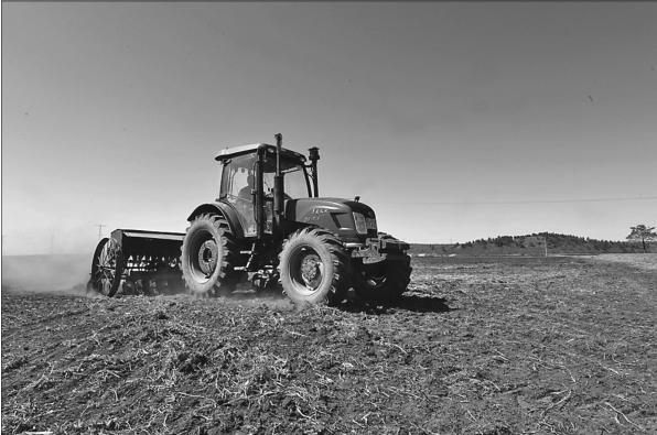 呼玛镇一村的一台拖拉机正在田间进行旋耕作业。随着天气转暖,呼玛县春耕生产掀起高潮,农民在田野里忙着翻地、旋耕、施肥、播种等,为今年有个好收成而忙碌。 周长平本报记者刘大泳摄