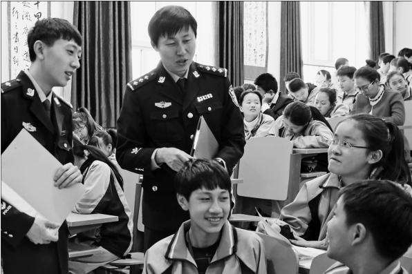 为进一步提升学生的安全防范意识,大海林林业地区公安局东岗派出所近日走进大海林第四中学,为同学们上了一堂生动的法制宣传教育课。 江涛本报记者荆天旭摄