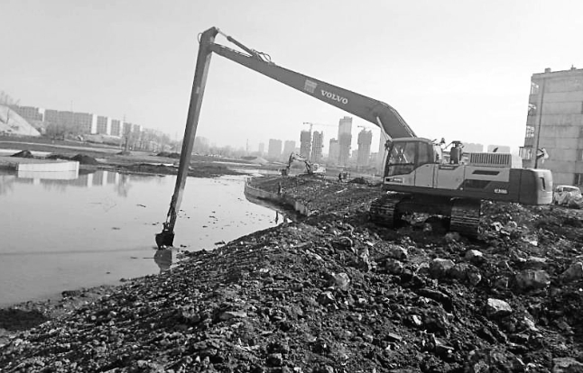 鹤岗正在进行的“两河十四沟”综治工程建设现场。