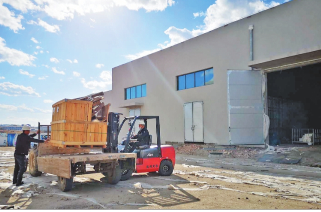 工人正在进行设备装卸。