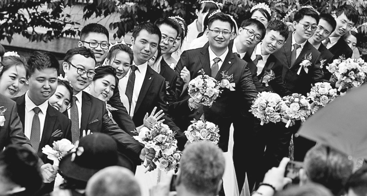 18日,哈尔滨工业大学举行第七届博士生集体婚礼,65对博士夫妻在母校、导师、亲朋和同窗见证下,喜结连理。 兰锐本报记者郭俊峰摄